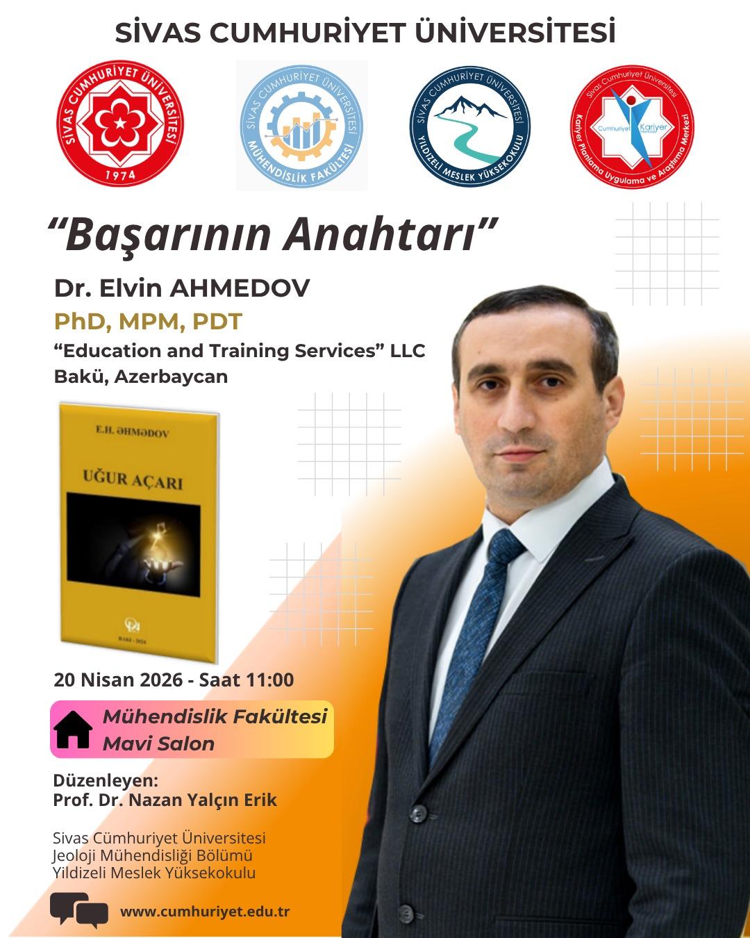 Dr. Elvin Ahmedov’un konuşmacı olarak yer alacağı, Prof. Dr. Nazan Yalçın Erik tarafından düzenlenen “Başarının Anahtarı” başlıklı söyleşiye davetlisiniz.